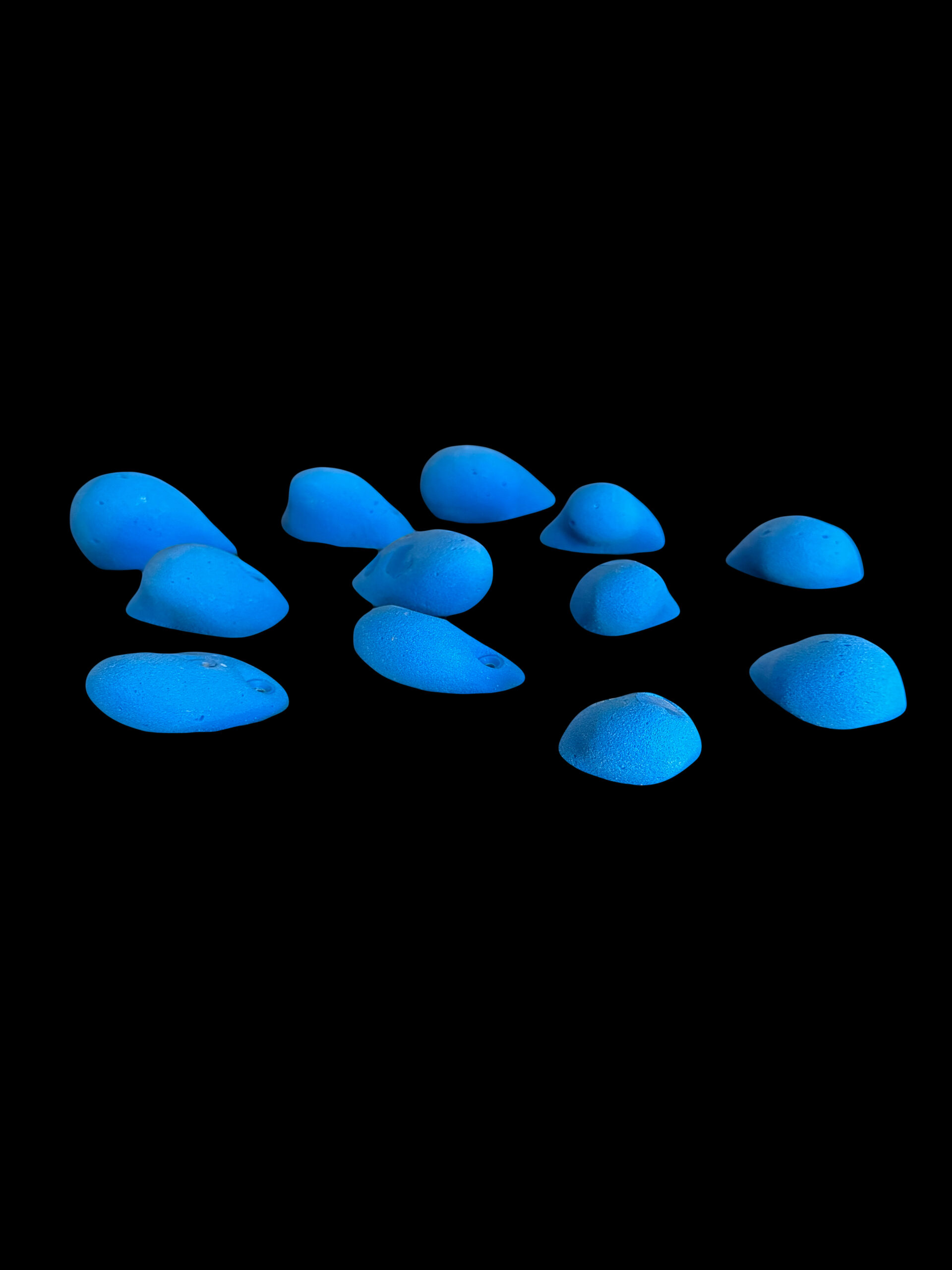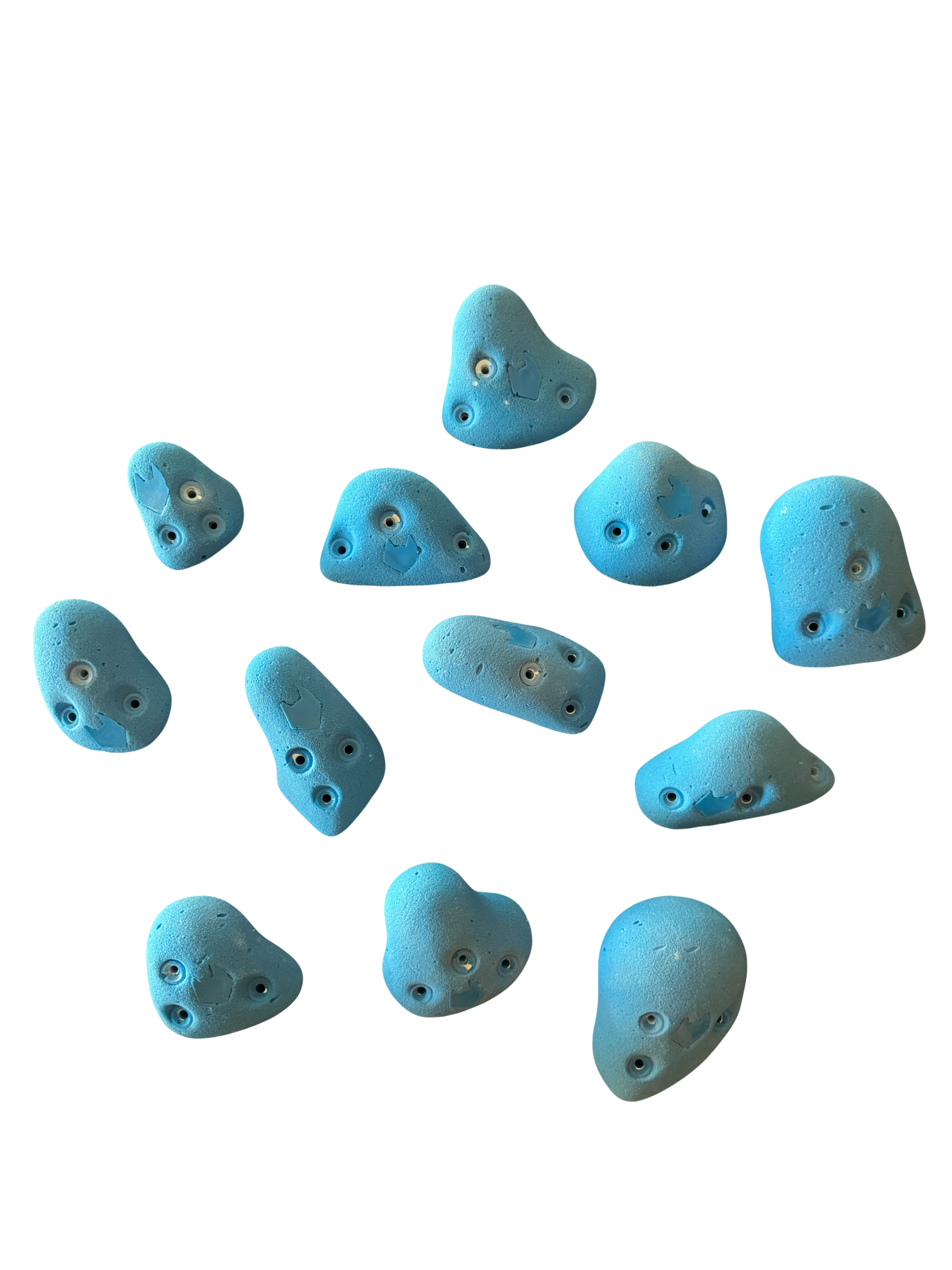 Pack de 12 presas de escalada tipo cachos romos, fijacion por tornillos de 2″ de largo.